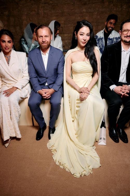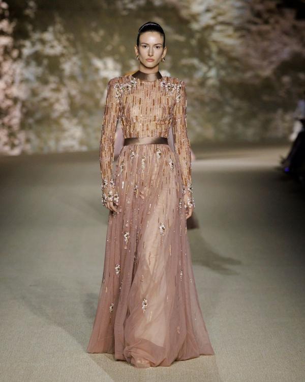 تضمّنت التشكيلة فساتين كوتور مطرزة بتفاصيل دقيقة إلى جانب مختارات من أرشيف الدار، وقد شكّل المشهد بين النخيل رمزًا للتجذر والتجدد في آنٍ واحد، مكرّسًا فكرة الحوار الثقافي التي يقوم.