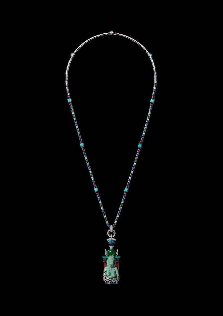 من أبرز ما يلفت النظر في المعرض القلائد والقطع الكبيرة الحجم، التي تتجاوز مفهوم المجوهرات اليومية. هذه القطع صُمّمت لتكون بيانات فنية، أشبه بقطع طقسية أو رموز احتفالية.